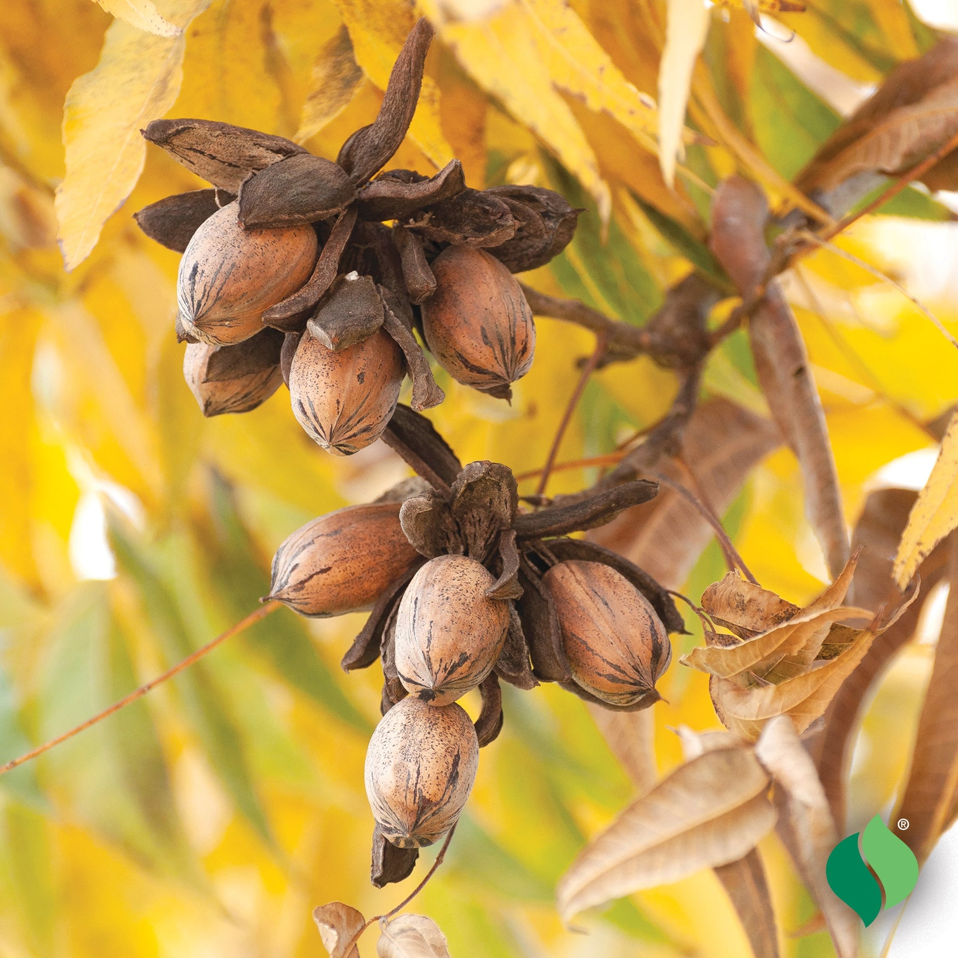 A hardy pecan tree (Carya illinoinesnsis) is a native, cold-hardy, large shade tree valued for its delicious, sweet, thin-shelled pecans. While self-pollinating, planting a second tree can increase nut production. Key characteristics include its impressive mature height of 75-100 feet, the unique splitting of its husk when ripe in the fall, and its aesthetic appeal with deep green leaves turning golden-yellow in autumn